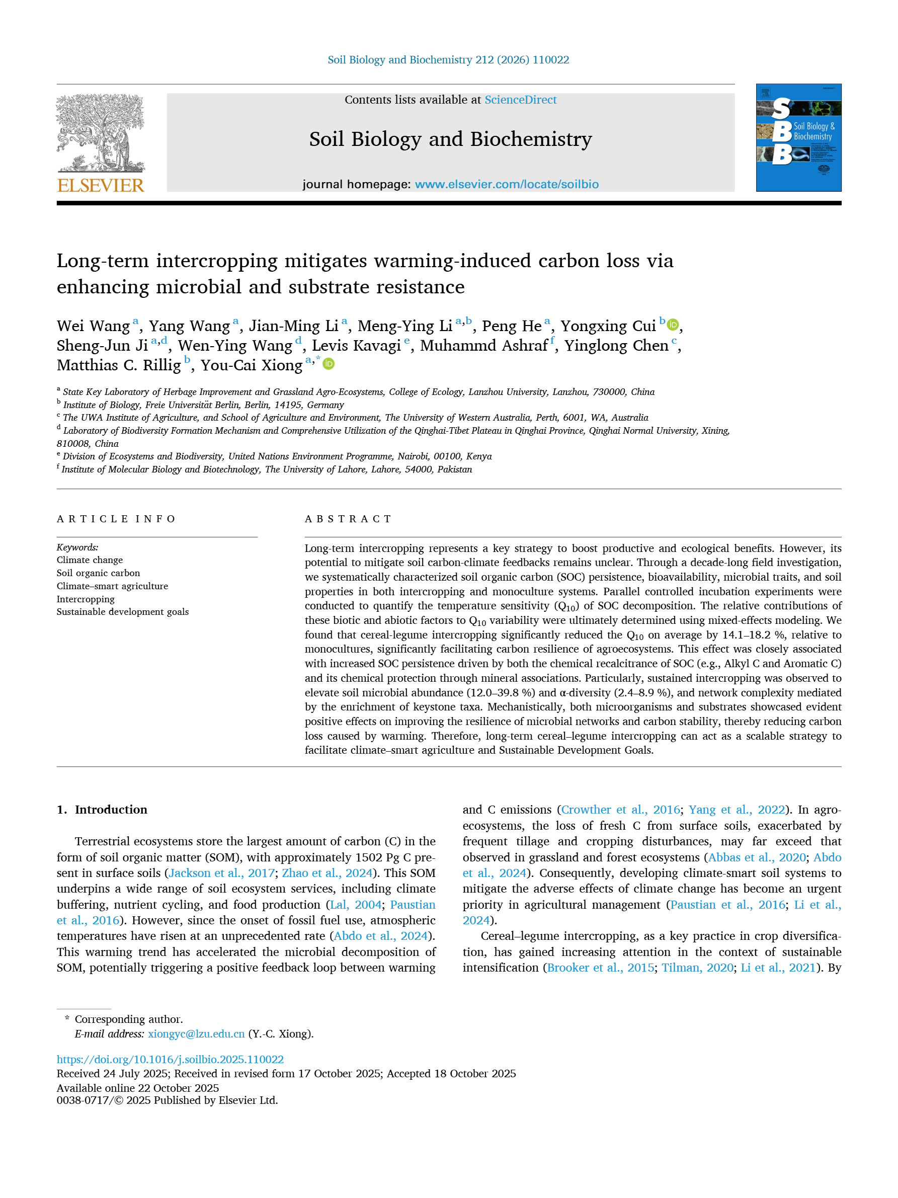 下一篇:Long-term intercropping mitigates warming-induced carbon loss via enhancing microbial and substrate resistance